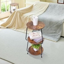 Small Round Side Table, 3 Tier Circular Narrow End Table with Storage Shelf,  additional preview