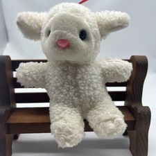 Small White Fleece Lamb, Previously loved, in good condition slight wear from many hugs. Note Bench not for sale .