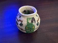 Small Wicker Pot/Basket From Panama With Parrot Art
