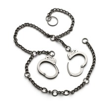 The Smith & Wesson Model 1800 Belly/Waist Chain is a nickel-finish restraint chain that includes handcuffs for a complete detention/transport setup. Includes handcuffs (Model 1800 commonly paired with Model 100 style cuffs).