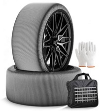 Includes a pair of snow socks for tires, a zippered storage bag and a pair of gloves. Ultimate grip, durable, tear-resistant, washable, and reusable. These tire snow socks easily fit any car or SUV, ideal for rentals or high-end vehicles.