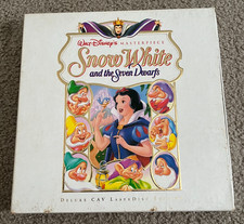 Snow White and the Seven Dwarfs Deluxe CAV LaserDisc Edition, complete 3‑disc box set. Edition: Deluxe CAV Edition. Special Features: CAV format, archival quality, collector’s box set, set of 10 lithographs that have not been opened.