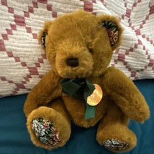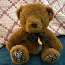 Soft Classics Brown Plush Bear Teddy w/ Bow, Floral Accents & Green Ribbon