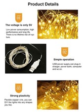 Safe to touch: The usb fairy lights made of high quality silver thread and LED beads, the lights are low heat emission, which is durable and safe to use(2m 20 leds/pcs). Usb powered string lights: String lights plug in a portable power bank or laptop directly, best decoration for desk or office.