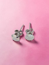 Solid 10K White Gold Opal Stud Earrings Round Cabochon October Birthstone