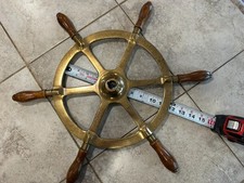 Solid Brass Nautical Ship Wheel 22” Boat Helm Teak Handles Maritime Decor