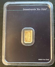 The product is a 1 gram bar of gold from the APMEX mint. This solid gold bar features a total precious metal content of 1 gram, making it a valuable addition to any precious metal collection. The bar's shape and composition make it a convenient and secure way to own and invest in gold. Perfect for collectors or investors looking to add a small amount of pure gold to their portfolio.