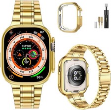 Solid Stainless Steel Strap Compatible with Apple Watch Ultra 49mm, Gold