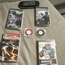 Sony PSP Console with Game Discs & Cases, Action, Shooter, Racing, Sports Lot