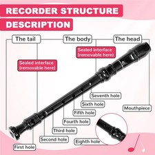 Soprano Recorder Instrument for Kids Student 8 hole German-style, Black (ABS)