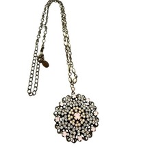 Sorrelli Crystal Brass Tone Pendant Necklace Preowned.