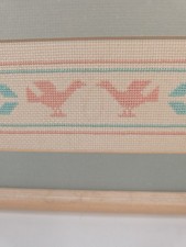 Southwest Vintage Handmade Needlepoint Framed Bird Wall Art – Dated 90s Folk Art