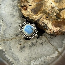 Southwestern Style Sterling Square Golden Hill Turquoise Adjustable Ring