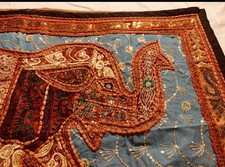 Spectacular Elephant Wall Hanging Beautiful Embroidered Vintage Fabrics 24”x36”