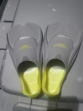 The Speedo Biofuse Training Fins in Gray & yellow rubber, size 3/4 are high-quality water sports equipment designed for training purposes. These fins are specifically designed by the well-known brand Speedo to provide a smooth and efficient swimming experience. With a comfortable fit and durable construction, these biofuse training fins are ideal for improving your aquatic maneuvers and enhancing your overall water sports performance.