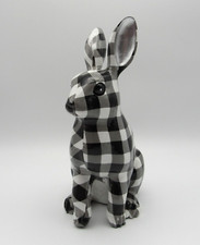 SPRING EASTER BUNNY RABBIT BLACK & WHITE GINGHAM DECOUPAGE FIGURINE SMALL NEW