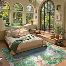 Spring Jungle Carpet, Green Bedroom Rug 8x10 Under Bed, Large Washable Rugs