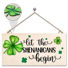 St Patricks Day Decorations Wood Sign with Two 3D Leaves Let light wood color