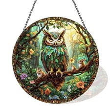 Stained Glass Window Hanging Decortions, Handmade Double-Sided Owl
