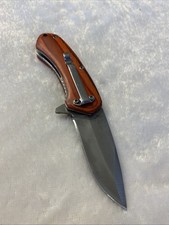 Stainless Blade Folding Knife 3.5" Satin Finish Wood Plastic Handle With Clip