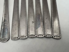 These nice stackable flatware set have a rope/feather design around the edges on both front and back of the flatware They have flat handles so easy to stack in a small space unlike others that have a curved feature to them Marked Stainless China Flatware Replacements or add it your current set Total is 23 pieces 8 Tablespoons 7 Teaspoons 1 Dinner Fork & 1 Salad Fork 6 Dinner knives Please note that all pre owned flatware may have different signs of wear such as light scratches, water marks, need polishing, etc.