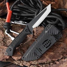Stainless Steel Fixed Blade Tanto Knife Full Tang Plastic Handle Black w/ Sheath