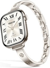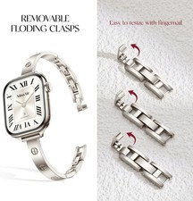 Compatible with Apple Watch sizes 38mm, 40mm, 41mm, 42mm, 44mm, 45mm, 46mm, and 49mm. Easy to install and remove with a secure clasp. Made from high-quality stainless steel for durability. Thin bracelet design suitable for dressy occasions.