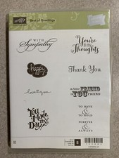 Stampin Up Best of Greetings Rubber Stamp Set Of 8 Stamps Retired 133485. They are in good preowned condition, see photos.