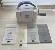 Stampin’ Up! Mini Cut & Emboss Machine w/Plates Used condition Works as designed Includes machine, 1 - base plate, 2 - cutting plates, 1 - embossing plate and 1 - 3-D embossing plate