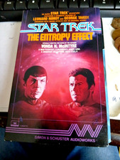 This product is an audio cassette of the novel "The Entropy Effect" from the Star Trek series, read by Leonard Nimoy and George Takei. Published by Simon & Schuster in 1988, the fiction audiobook features a cardboard sleeve and has a run time of 90 minutes. Written by Vonda N. McIntyre, the science fiction and horror genre book is a must-have for Star Trek fans looking to enjoy the story in its original format from the United States.