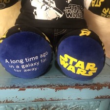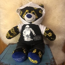 Star Wars 2015 Build A Bear “17 Measurements 17”L x 11W ( paw to paw ) This Star Wars Bear is in good preowned condition. The bear comes with a pair of jeans and a Star Wars Hoodie Weighs 1.5.8lbs before packing