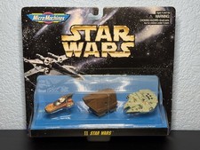 This product is a vintage Star Wars Micro Machine set from 1996, featuring iconic vehicles such as the Millennium Falcon, Landspeeder, and Sandcrawler. Perfect for collectors and fans of the science fiction franchise, these miniature replicas come sealed and ready for display. The set captures the essence of the Star Wars universe, making it a must-have for any Star Wars enthusiast looking to add to their collection of memorabilia. As is. All sales final. No refunds returns or exchanges