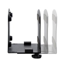 This PC Wall Mount Bracket offers a space-saving and convenient solution for workstation setups. Constructed from durable 0.09in (2.5mm) powder-coated SPCC steel, this heavy-duty wall mount securely holds desktop computers weighing up to 39.6lbs (18kg). Effortless installation is simplified by the keyhole mounting feature, enabling quick deployment. Maximize a workspace by mounting the workstation tower onto a nearby wall or attaching the computer to the side of your desk, providing flexibility in placement. The tool-less adjustment mechanism allows for easy width adjustment using hand knobs, with included spacers ensuring a snug fit for different CPU sizes including SFF chassis. The open design of the PC holder provides convenient access to drive bays, peripheral ports, and power.