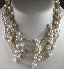 Statement Bridal Wedding Pearl Necklace on Silk Handcrafted Jewelry Unusual