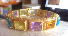 Statement Etruscan Style 14K Yellow Gold Multicolor Large Gemstone Bracelet