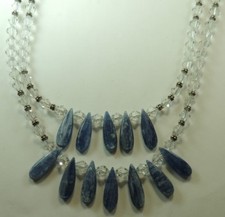 This is a sterling silver kyanite and crystal necklace. The necklace is about 19 1/2" long. The necklace has a lobster claw closure.