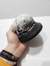 Fun statue!!!! Not real made of like plaster like material with a wooden base Since hand made there are some flaws. Used condition Some scratches and stains
