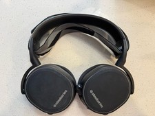 Headset is in working condition. Ear cups have some wear from its age, but not bad. Wireless adapter, 3.5mm wired connection, and charging cable included. Maintains good charge.