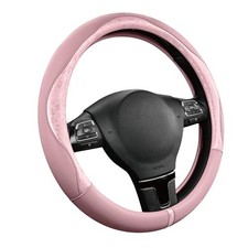 Steering Wheel Cover Patterned Leather Patchwork Design, Universal Fit Pink
