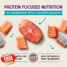 HIGH-PROTEIN, ANCESTRAL NUTRITION: 65-70% animal protein with wild-caught salmon as the #1 ingredient -- formulated to provide the nutrient-rich diet your cat's wild ancestors thrived on. SMALL KIBBLE SIZE WITH DIGESTIVE SUPPORT: Perfect for kittens, senior cats, and cats with dental issues -- includes natural fiber and probiotics to promote gentle digestion.