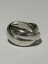 Gorgeous Fully Hallmarked Chunky Solid (not hollow) Sterling Silver Interlocking Triple Band Ring. Hallmarked for London Assay (Leopards Head) Sterling Lion, 925, date letter d (2003) & makers mark B&NJ.