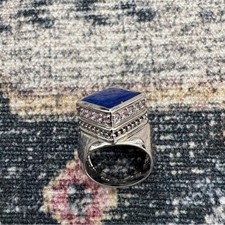 Sterling Silver 925 Marked Ring with Lapis Lazuli & Pink Crystals Sz 6 Pre-owned in excellent condition