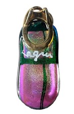 STERLING SILVER Artisan Dichroic Glass Blue Green Pink Pendant Beetle SIGNED 2”