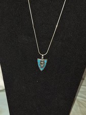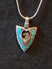 Sterling Silver Eagle arrowhead pendant necklace turquoise chip Inlay