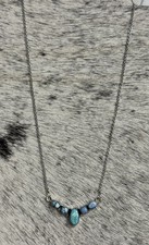 Sterling Silver Golden Hills π©΅& πWhite Water Turquoise 5 Stone V Bar Multi-stone Necklace. The cabs are hand cut and have different shapes / sizes soo cute.