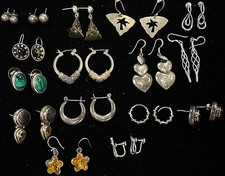 This product is a set of 16 sterling silver matching earrings, with a total weight of 71.31 grams. The earrings are vintage and made in the United States. They are of high quality, with a metal purity of 925 sterling silver. The earrings are designed for women and come in a mixed lot, perfect for adding a touch of elegance to any outfit.
