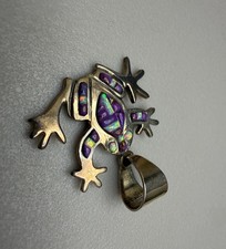 Sterling Silver Mohave Purple Turquoise & Opal Inlay Southwest Frog Pendant