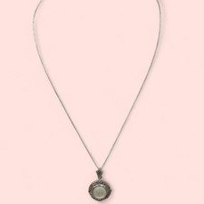 Sterling Silver Mother of Pearl Marcasite Pendant Necklace Italy Vintage