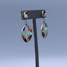 Sterling Silver Multi-Stone Inlay Post Dangle Earrings by E. & L. Bobelu