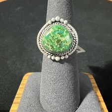 This Sterling Silver Sonoran Gold Turquoise Adjustable Ring is a beautiful piece of jewelry that is perfect for various occasions such as Christmas, anniversaries, birthdays, and Valentine's Day. The oval-shaped green turquoise stone set in sterling silver gives it a unique and ethnic appeal. This is handmade, and features an adjustable size, making it suitable for both men and women. With its nature-inspired theme and Western flair, this piece is sure to be a standout accessory for those who appreciate ethnic and regional styles.